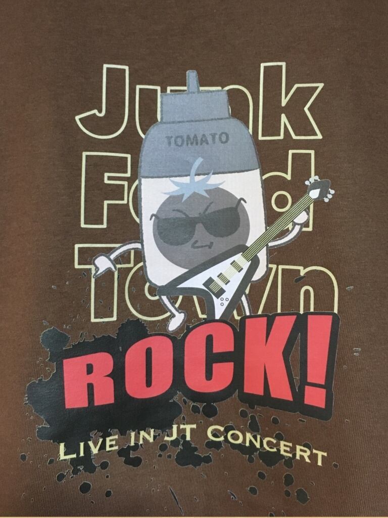 ジャンクフードタウンキャラクターのコンサートデザイン&ロゴ文字をプリントした程よい厚みの半袖Tシャツです。