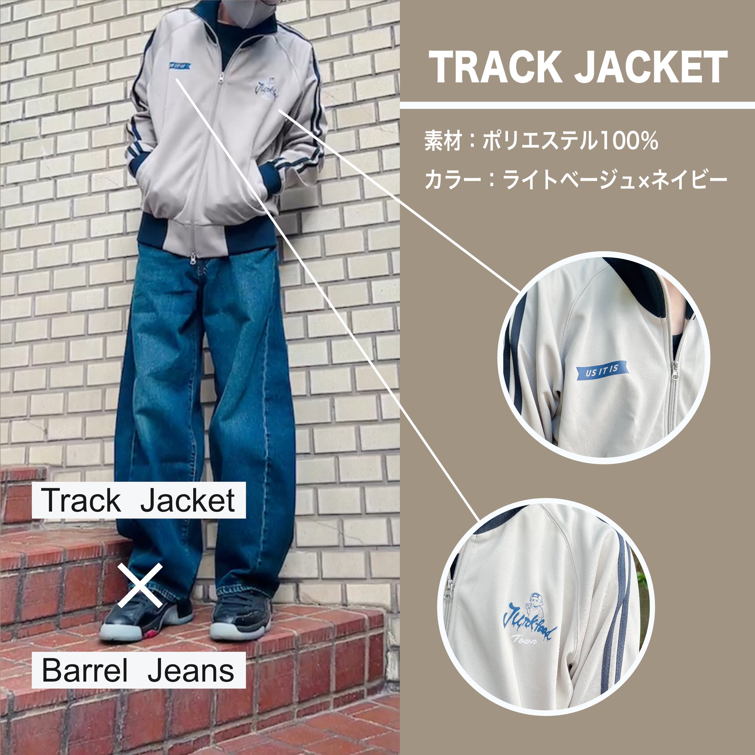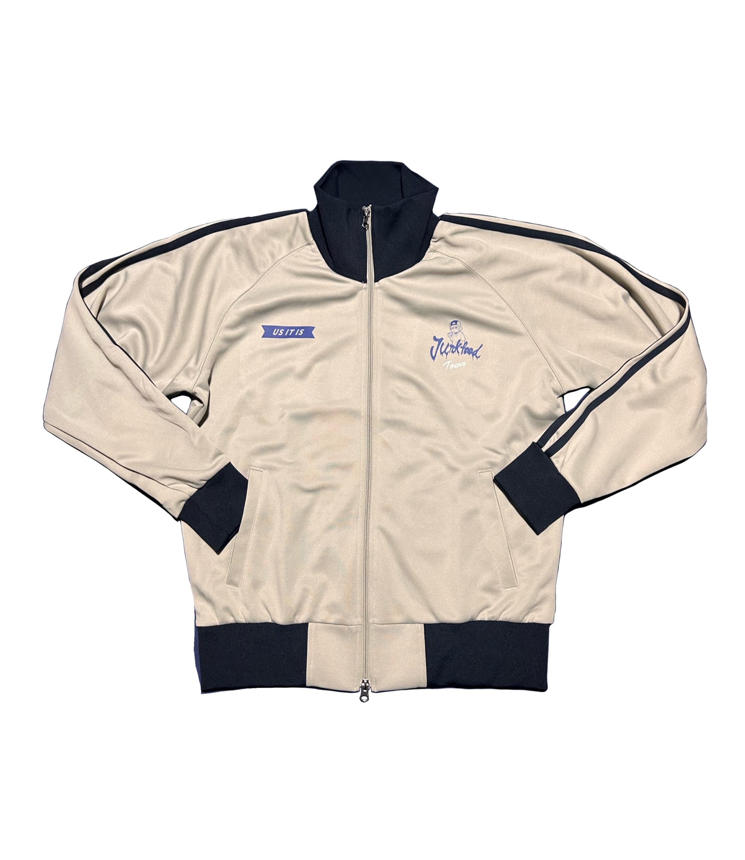 ストリート系ロゴ入りのトラックジャケットでクラシカルなサイドラインが入った魅力的な一着です。