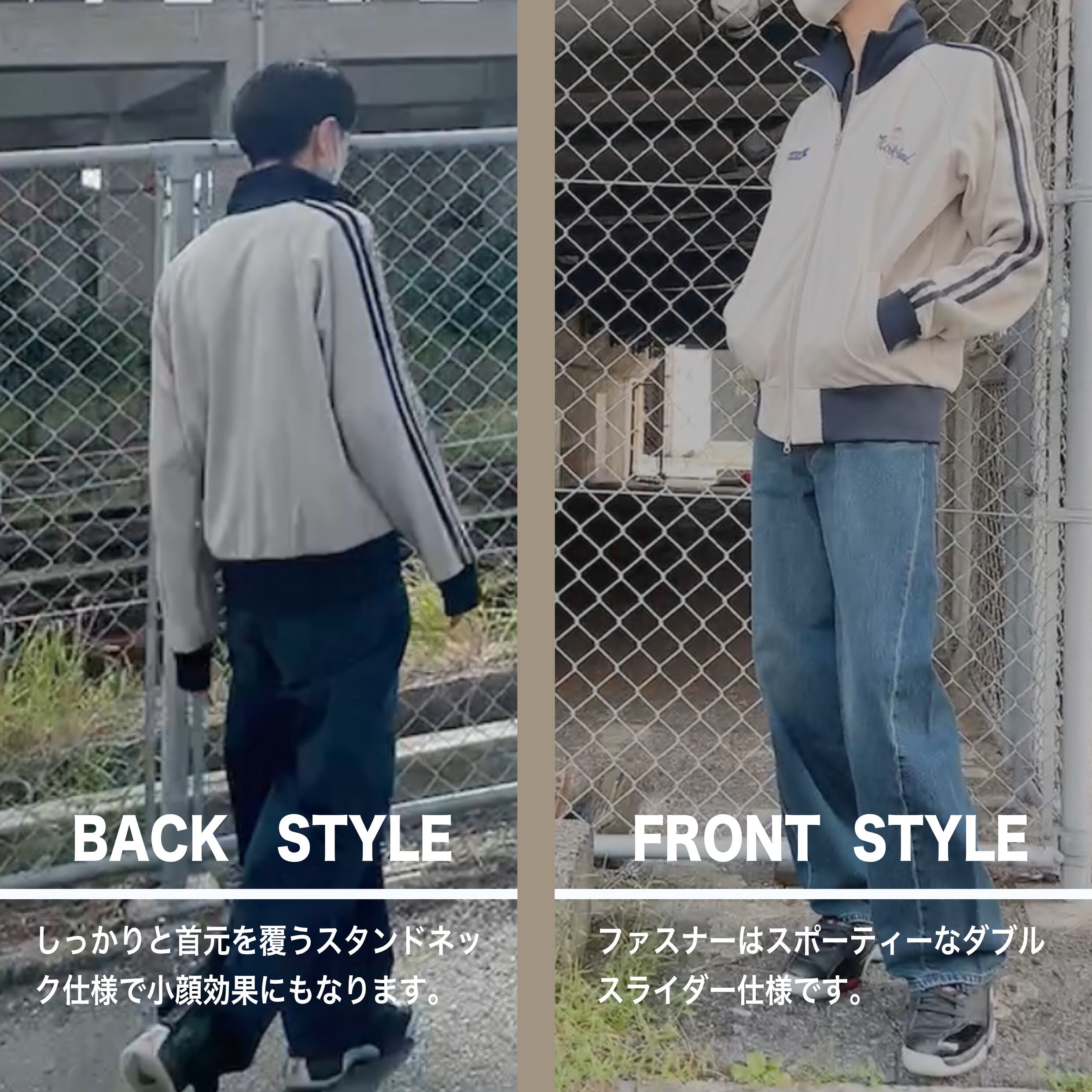 ファスナーはスポーティーなダブルスライダー仕様でスポーツミックスコーデに取り入れやすいアイテムです。
